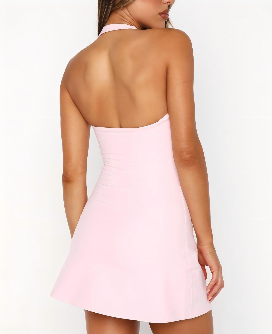 Vestido de moda con falda halter que abraza la cadera para mujer